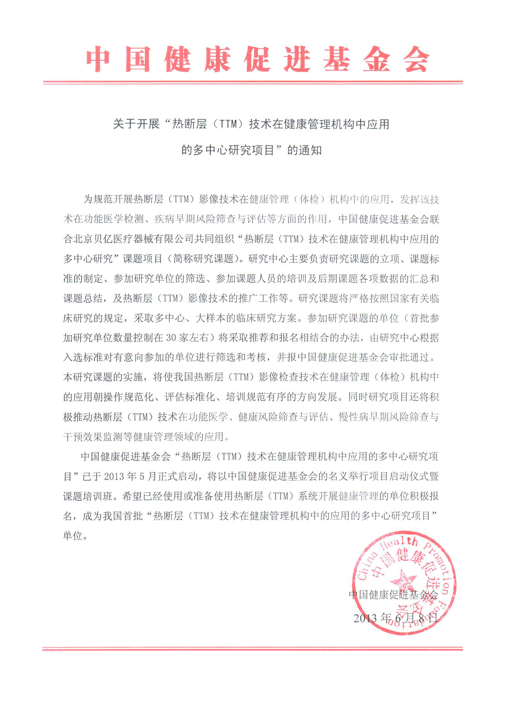 關于開展“熱斷層(TTM)技術在健康管理機構中應用的多中心研究項目”的通知